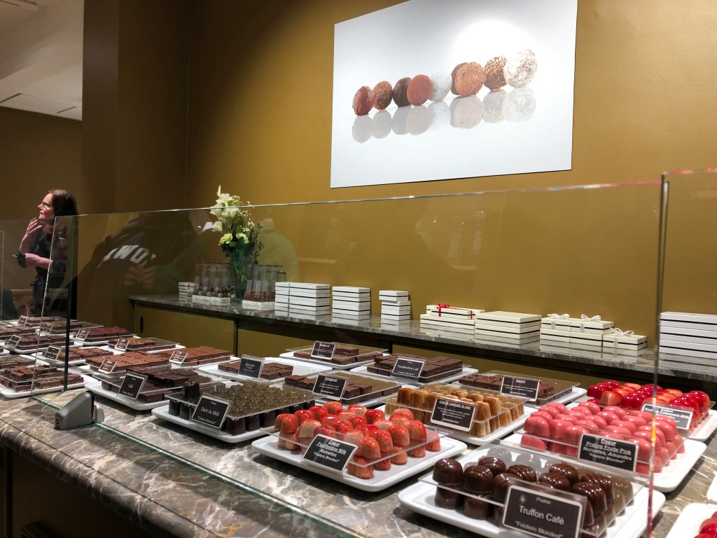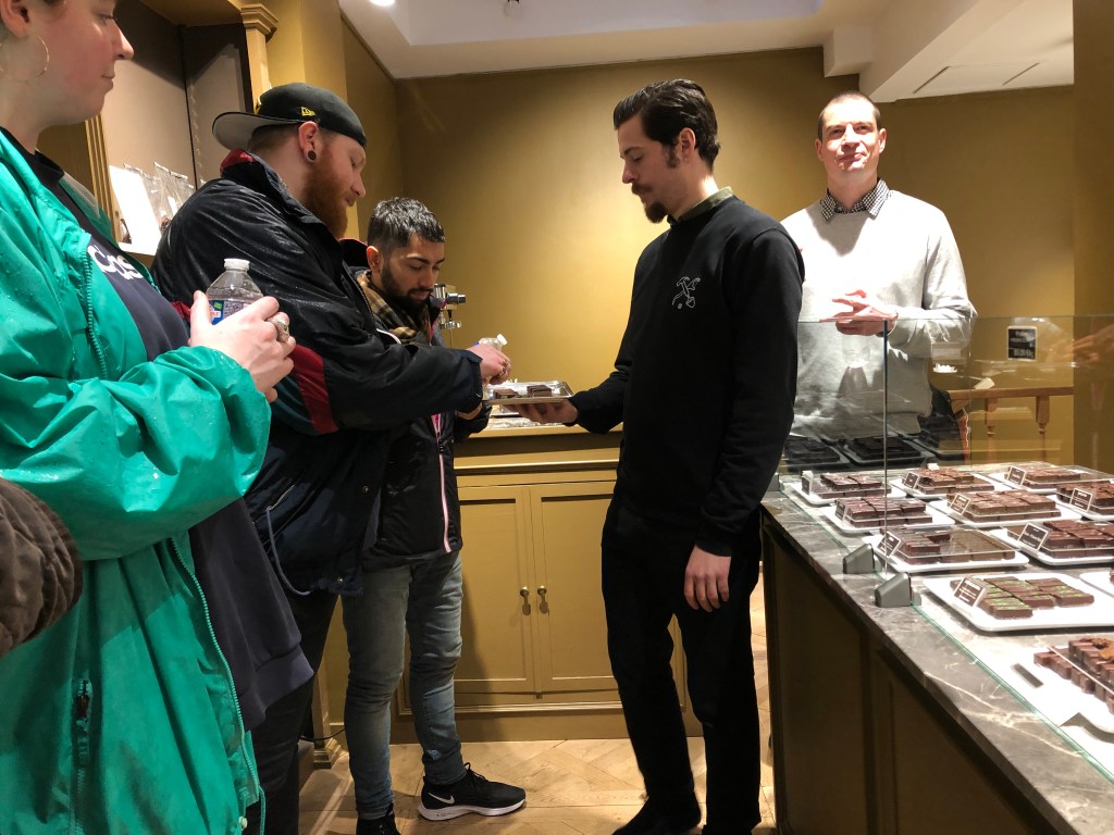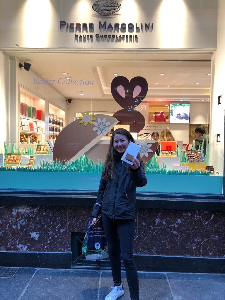 So when I finally arrived in Brussels, you can bet the first thing I did was make my way to Chocopolis, the starting point of my Brussels Journey. Our awesome tour guide, met our group of about fifteen and the afternoon was off! As the evening progressed, we stopped at three chocolate shops and three bars/taverns. At each “sweet” shop, we were showered with chocolates- I was quite surprised at how generous each stop was! While we sampled a variety of chocolates in each store, our guide educated us about the different types of beans and varieties.