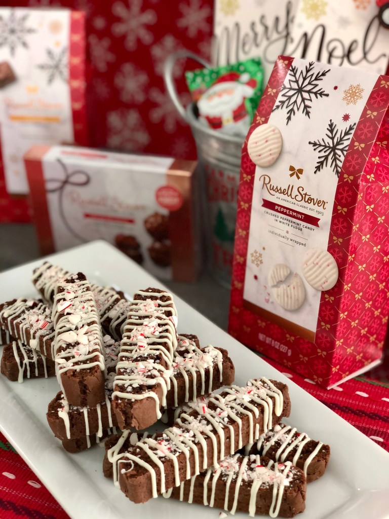 - Once cooled, melt the White Chocolate Peppermints in a microwave safe bowl for 30 seconds on 50% heat. Microwave for additional 15 second increments until melted. Using a spoon or piping bag, drizzle chocolate over biscotti. Sprinkle with the crushed candy canes. Store in an airtight container.