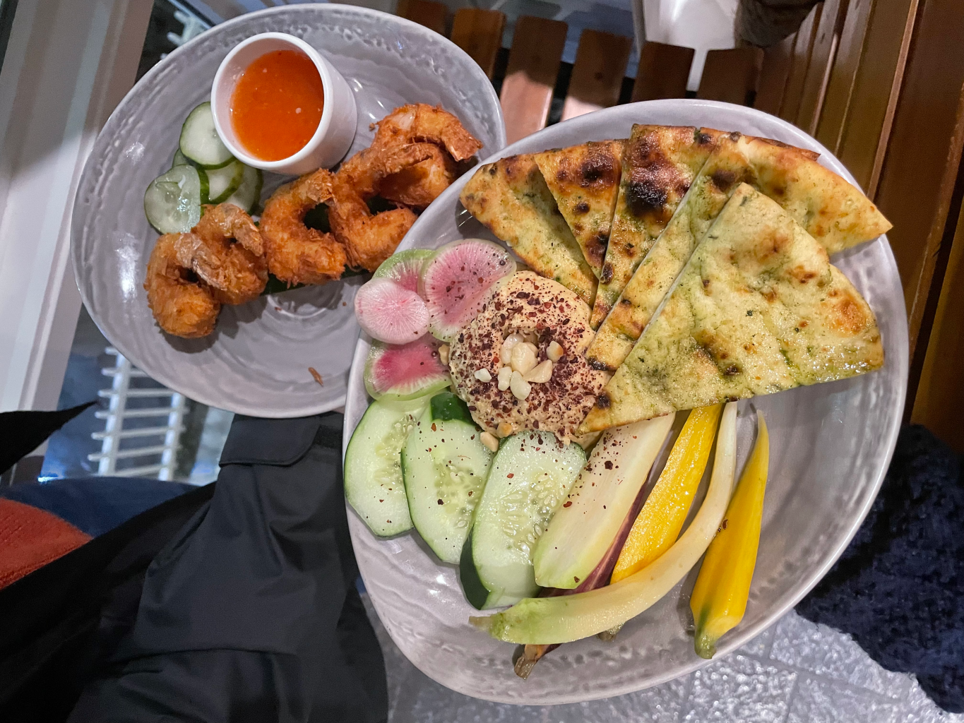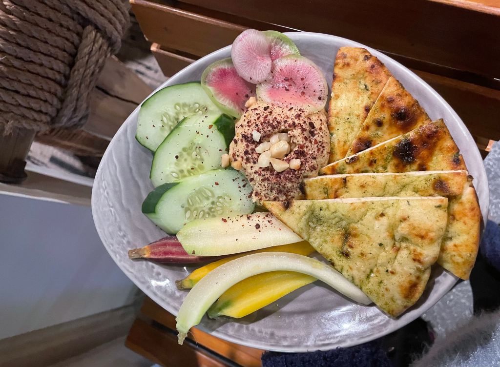 Ok, I just have to take a moment to highlight and gush over the Macadamia Nut Hummus (“hawaii grown mac nuts, seasonal vegetables, lemon evoo, herb flatbread, sumac”), which is new since my last visit. I was not originally planning to order it, but that night, when my sister (dining companion for the night) pointed it out, I decided to say let’s try it. Wow. Wow. Wow. Simply wow. I don’t know what magical pixie dust was sprinkled in there, but I was devastated that I didn’t follow my gut and order a 2nd (or 3rd) plate… The flavors were fresh out-of-this-country; like it seemed like I was literally in Hawaii or somewhere else getting this quality and taste. The hummus itself was just…. SO good and so hard to even explain the taste- you just have to try it yourself.
