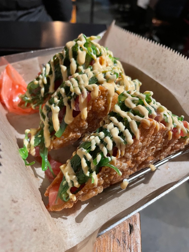 Ahi Tuna Tacos – These little devils. Do not miss these. Repeat. Do not miss. Even if you think you don’t like ahi tuna, I promise you will fall in love. And I almost made the mistake of missing these myself. Shame on me! It wasn’t until both Chef Jason and my mom pointed these out that caught my attention. When that tuna first hit my mouth, I was certain it was some of the FRESHEST and best tuna I have ever had – ranking right up there with everything I had in Japan. Paired with the perfect amount of sriracha aioli and crispiness from the wonton shell, these are perfect. 10 plates, please!