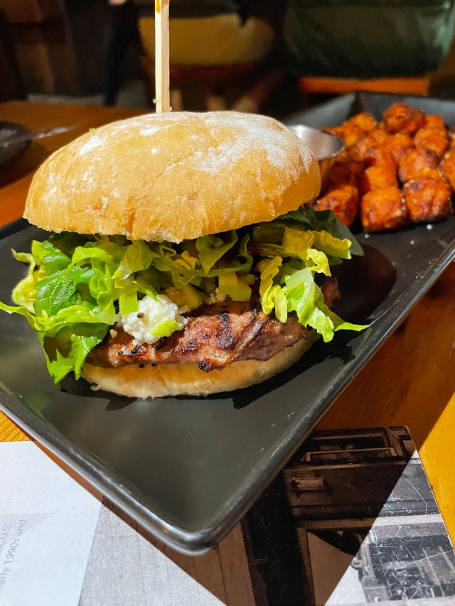Wild Boar Burger – When we saw this on the menu, my mom and I decided we ought to try it. I mean, how often do you see boar on a menu? Plus, it had all our favorite things: blue cheese, chipotle bbq, apples… How can you go wrong? And, of course, I had to get their super-duper sweet potato tots to go with it! This bad-boy burger was TOO GOOD to be true, coming from someone who does NOT like or eat burgers. Now it is just a shame that I cannot find something this magical and delicious anywhere else. I can’t even find wild boar at the store to buy and recreate!